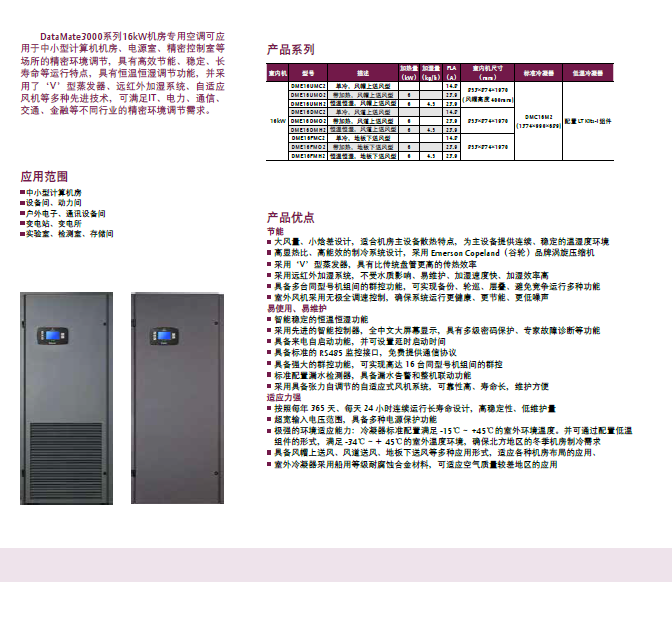 ■ 大风量、小焓差设计,适合机房主设备散热特点,为主设备提供连续、稳定的温湿度环境;